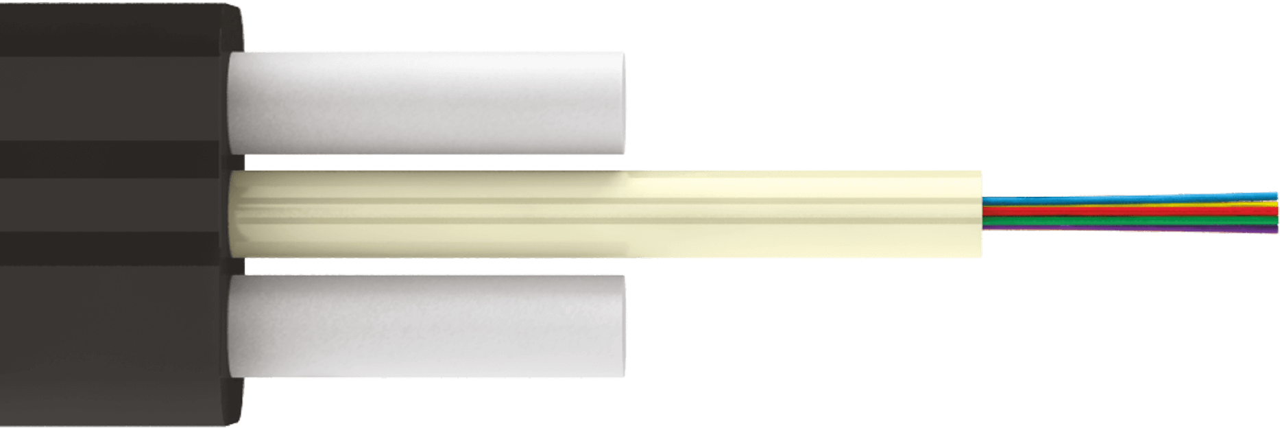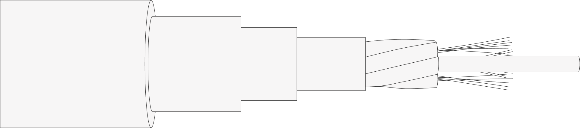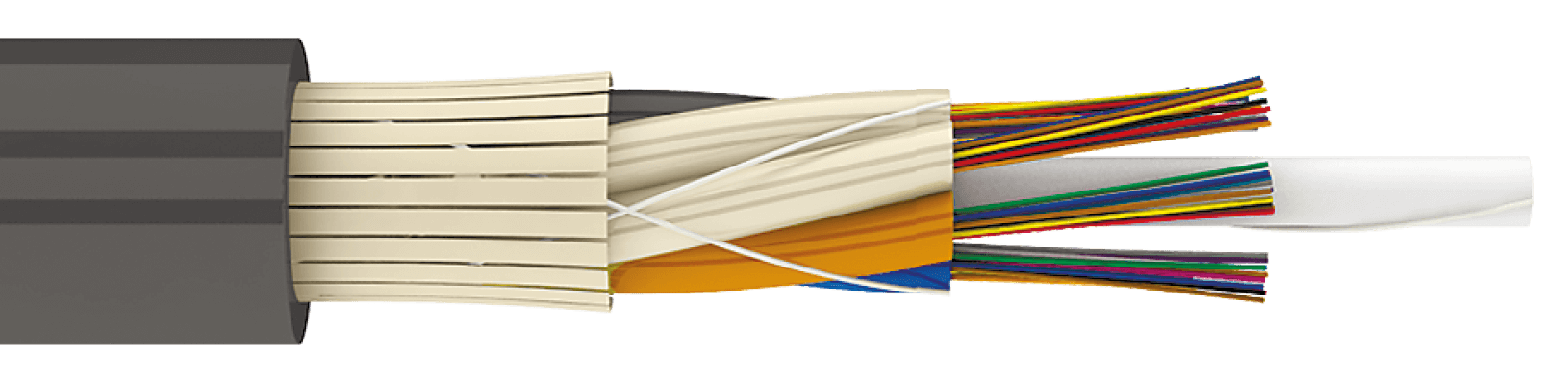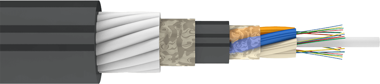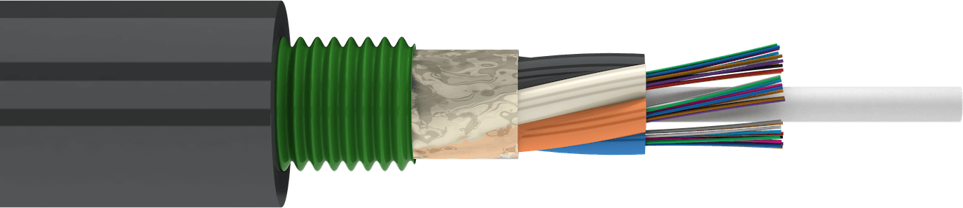 Свободный доступ к волокну в любой точке кабеля, не распространяет горение, стойкий к УФ-излучениям.